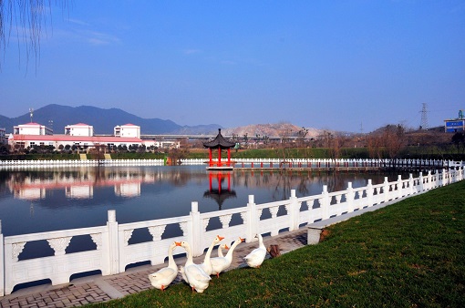 走進中材安徽廠區,首先映入眼簾的是一片人工湖,波光粼粼的湖面上,不斷有魚兒躍起,野鴨和鵝兒在暢游……