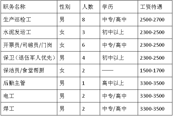 1、男45歲以下,女40歲以下,開(kāi)票員/司磅員/門崗會(huì)電腦操作,電焊工應(yīng)屆畢業(yè)生也可;