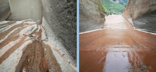 2018年3月,晶牛三耐微晶應用于四川涼山坪頭水電站,同年6月經歷1360小時的泄洪,洪峰流量826m3/s,現場確認,微晶板材整體完好,試驗結果超過預期;后續試驗在1#2#孔泄洪閘繼續推進,現場經重達19kg堅硬塊石自30m高空墜落沖擊無破損。坪頭水電站的數年應用表明,晶牛三耐微晶在大流量、多泥沙、堅硬推移質水流中的優異表現,已經超越了水電水利行業長期采用的抗沖磨材料,在破解百年水力發電泄洪沖刷瓶頸的同時,為水電水利工程修補加固、灌溉、發電等翻開了新的一頁。