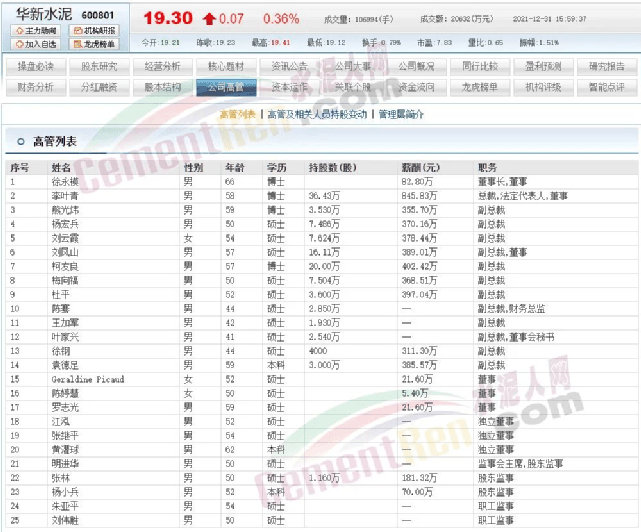 據(jù)水泥人網(wǎng)今年1月初消息,華新水泥2021年第六次臨時(shí)股東大會。通過了《關(guān)于調(diào)整公司非執(zhí)行董事長津貼的議案》。董事長徐永模的薪酬從216.2萬元下調(diào)至82.8萬元,直降133.2萬元。