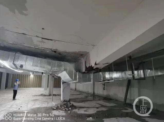 ▲除了立柱,地下室的橫梁也出現(xiàn)了嚴(yán)重的斷裂。圖片來源/受訪者供圖