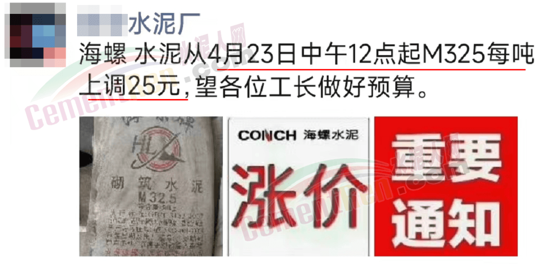 同日,陜西關(guān)中地區(qū)海螺水泥通知從4月23日中午12點起M325砌筑水泥上調(diào)25元/噸。