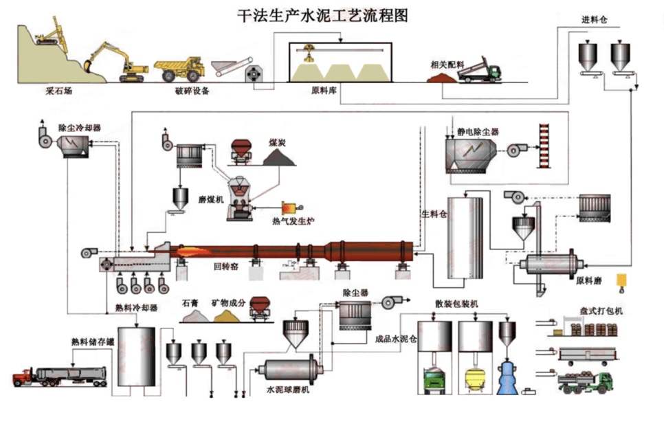 水泥生產(chǎn)分為生料制備、熟料煅燒和水泥制成三個(gè)主要流程,也就是水泥行業(yè)常說的“兩磨一燒”。