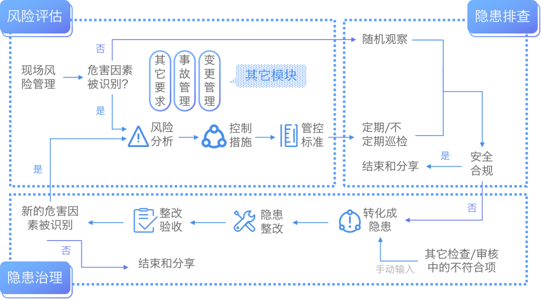 通過信息化手段,結(jié)合國家對(duì)安全風(fēng)險(xiǎn)雙控體系的建設(shè)要求,實(shí)現(xiàn)了“風(fēng)險(xiǎn)辨識(shí)-風(fēng)險(xiǎn)評(píng)估-風(fēng)險(xiǎn)控制-隱患排查-持續(xù)改進(jìn)“的雙控閉環(huán)管理,實(shí)現(xiàn)安全工作的管控關(guān)口前移、精準(zhǔn)監(jiān)管、源頭治理,從而滿足水泥企業(yè)對(duì)于生產(chǎn)過程中的安全風(fēng)險(xiǎn)管控需求。