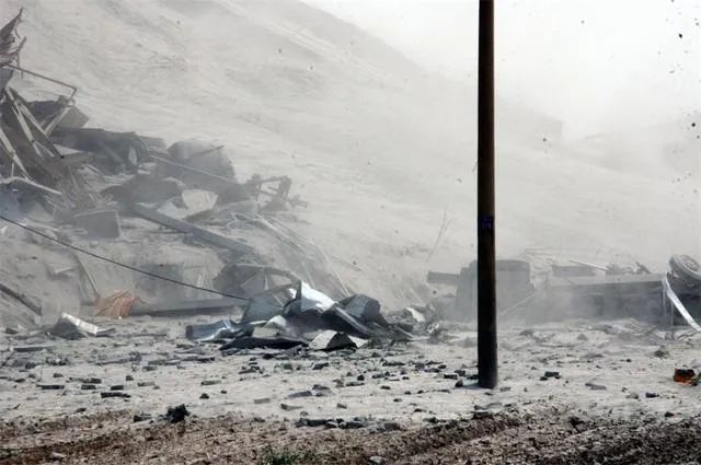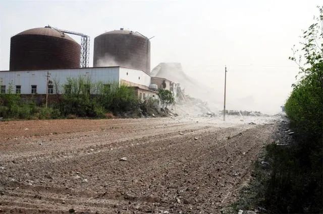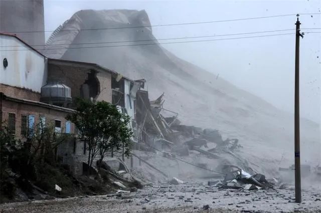 圖片左側(cè)為最先發(fā)生傾倒的粉煤灰倉