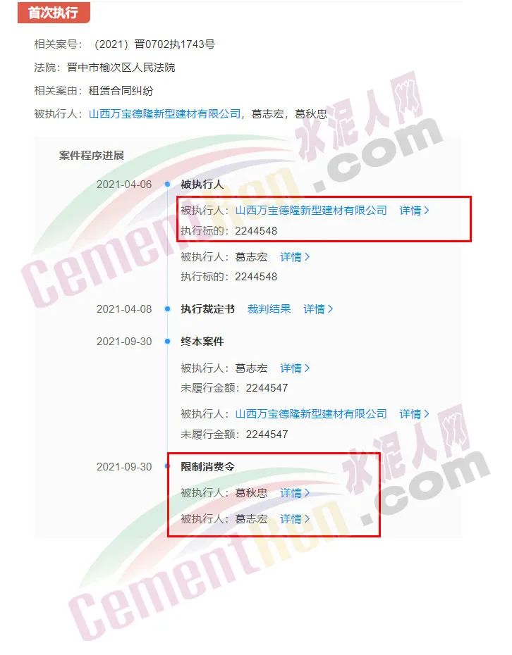 2021年4月6日,因租賃合同糾紛被執(zhí)行總金額達(dá)224.4548萬元,法人被限制消費(fèi)。