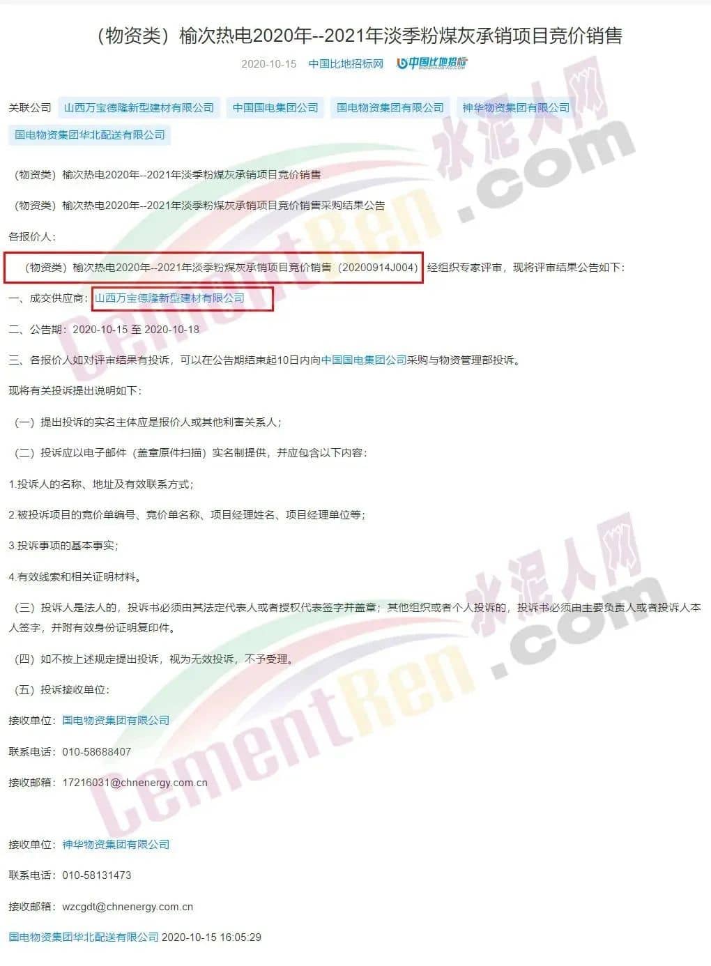 水泥人網(wǎng)注意到,這家企業(yè)曾中標(biāo)中國國電集團(tuán)有限公司榆次熱電2020年--2021年淡季粉煤灰承銷項(xiàng)目。