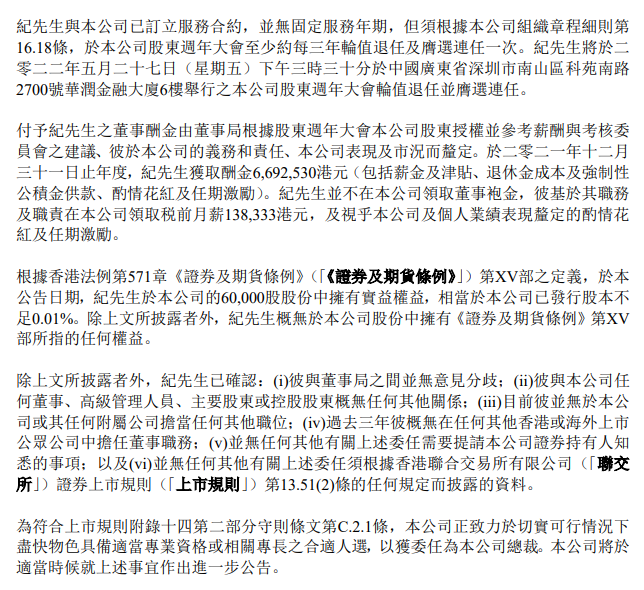 紀友紅獲委任為董事局主席、戰(zhàn)略與投資委員會主席及提名委員會主席;陳康仁獲委任為薪酬與考核委員會成員;蘇堯鋒獲委任為本公司之公司秘書及授權(quán)代表。