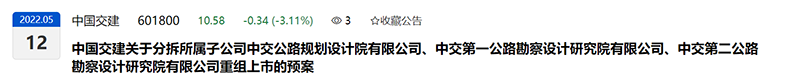 記者注意到,重組對手方之一的中國交建也于5月11日晚發(fā)布了分拆子公司重組上市預(yù)案。
