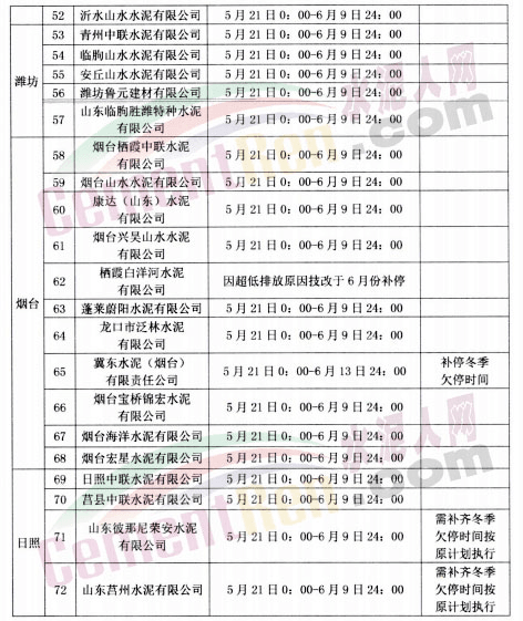7 山東莒州水泥有限公司需補齊冬季欠停時間按原計劃執行。