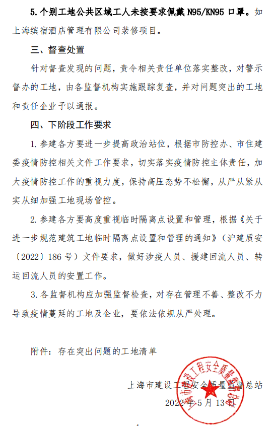 5.個(gè)別工地公共區(qū)域工人未按要求佩戴N95/KN95口罩。