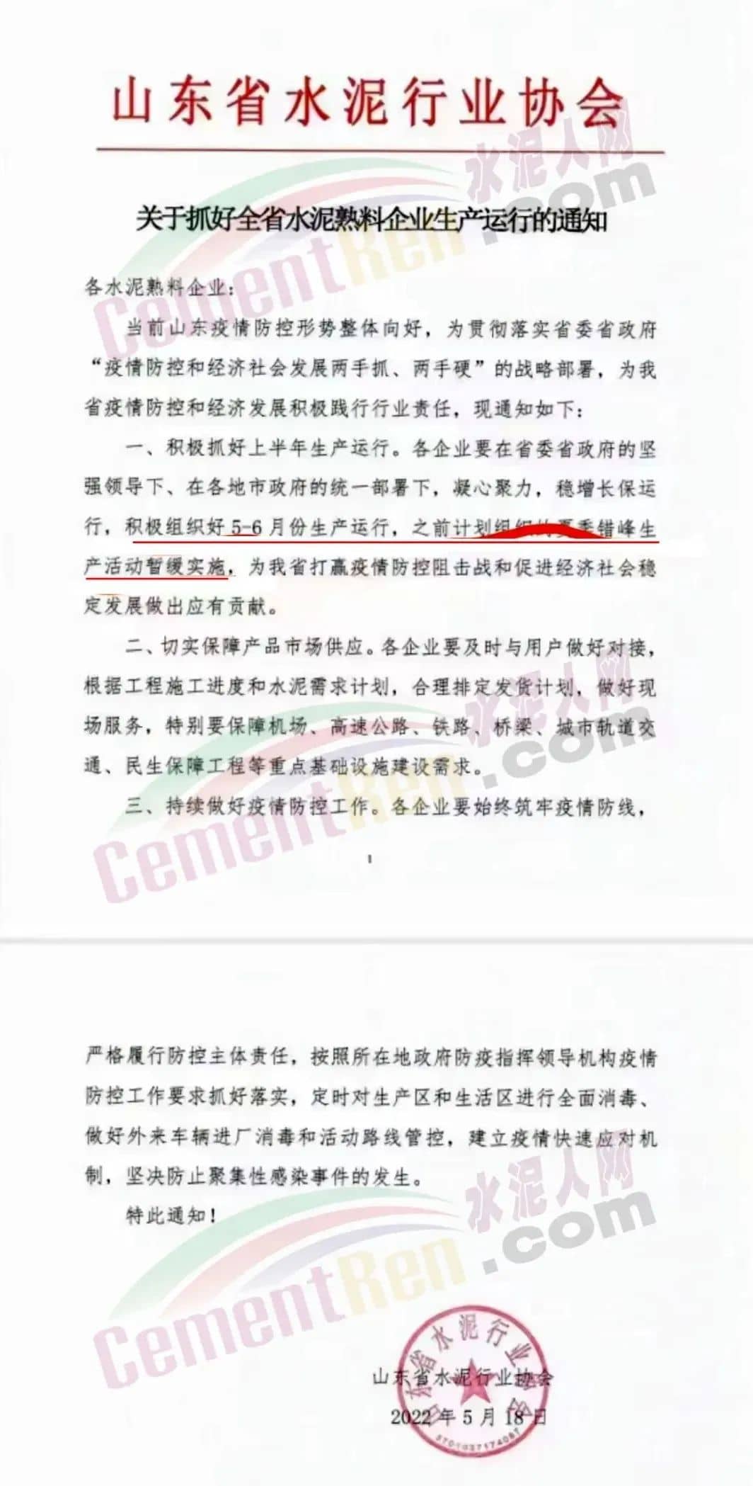 據水泥人網此前消息,本月11日山東省水泥協會剛剛發布了5月21日開啟夏季錯峰的通知。