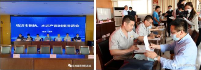 5月28日,山西臨汾市鋼鐵、水泥產(chǎn)需對接洽談會在晉南集團(tuán)召開。9家鋼鐵、水泥生產(chǎn)供應(yīng)企業(yè)、10家重點(diǎn)項(xiàng)目建設(shè)單位、8家交通運(yùn)輸項(xiàng)目建設(shè)單位、32家市政及房地產(chǎn)項(xiàng)目建設(shè)單位參加洽談會。