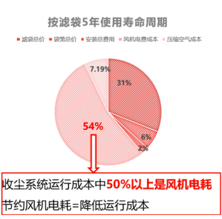 省下的就是賺到的,僅降低壓差一項就為企業節省了5000萬/年的費用。再加上更換濾袋需要采購新濾袋的成本,袋籠成本,安裝費用、更換濾袋所帶來的易損件費用等。對于整條生產線而言這部分費用并不很高 ,但是經年累月,若經常更換濾袋,所帶來的支出增加就可能導致企業成本上漲,在價格戰中丟失“市場份額”。