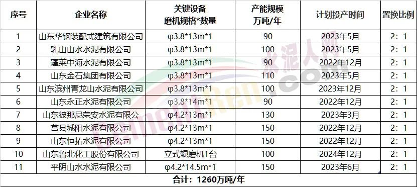 山東省此前發(fā)布的《山東省水泥粉磨產(chǎn)能置換實(shí)施辦法》第六條規(guī)定:2022年年底前退出的3.2米及以下水泥粉磨裝置。不到半年時(shí)間,山東省工信廳就公布了10多個(gè)產(chǎn)能置換項(xiàng)目,產(chǎn)能規(guī)模近2000萬(wàn)噸/年。