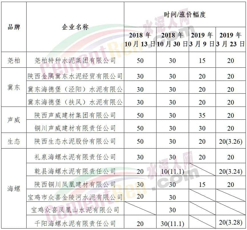 2019年3月22日,生態(tài)水泥有關(guān)負(fù)責(zé)人召集,陜西省水泥協(xié)會(huì)有關(guān)負(fù)責(zé)人、堯柏水泥有關(guān)負(fù)責(zé)人、冀東水泥有關(guān)負(fù)責(zé)人、聲威水泥有關(guān)負(fù)責(zé)人、海螺水泥有關(guān)負(fù)責(zé)人、生態(tài)水泥有關(guān)負(fù)責(zé)人在西安市鳳城八路附近茶秀商談價(jià)格上調(diào)事宜,并達(dá)成以下共識(shí):從3月23日起各品種水泥上調(diào)20元/噸。