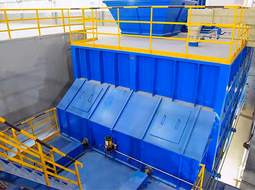 ?、厶娲剂?,RDF、固態廢棄物從預燃爐尾部通過螺旋、溜槽、兩道翻版閥進入爐內;
