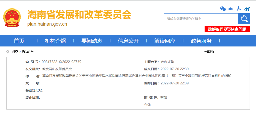 根據(jù)《海南省固定資產(chǎn)投資項(xiàng)目節(jié)能審查實(shí)施辦法》(瓊府〔2017〕47號(hào))等有關(guān)規(guī)定,我委擬公開(kāi)遴選1家評(píng)審機(jī)構(gòu)承擔(dān)華潤(rùn)水泥臨高金牌港綠色建材產(chǎn)業(yè)園水泥粉磨(一期)等三個(gè)項(xiàng)目節(jié)能報(bào)告評(píng)審工作。現(xiàn)將有關(guān)事項(xiàng)通知如下: