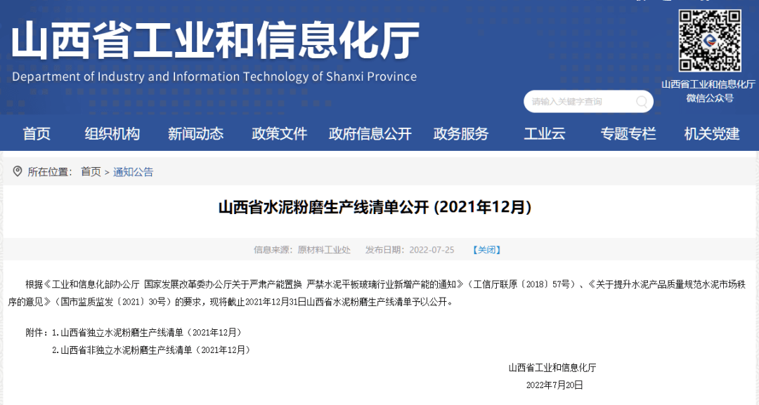 山西省獨立粉磨站生產(chǎn)線清單(2021年12月)