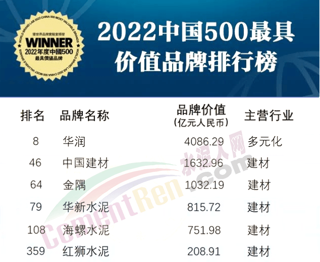 水泥行業中華潤、中國建材、金隅、華新水泥、海螺水泥、紅獅水泥等多家企業入選,其中華潤主營行業為多元化。