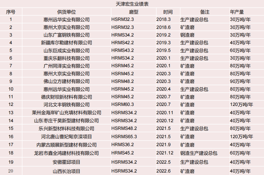 近十余年來,天津宏生建材積極與國內外研發制造立磨的資深專家及科研院所合作,綜合國外萊歇和宇部公司以及國內天津院、合肥院、中信重工等知名立磨供貨商的技術特點,大力開發具有顯著節能效果的HSRM平盤錐輥型立磨機。 有HSRMKS65、HSRMKS60等型號,其整體結構合理,技術先進,運行穩定可靠,所供貨的立磨產品在設備可靠性和運行指標上均處于國內領先水平。粉磨電耗低、立式磨機產量高的效果,生產的礦渣微粉活性指數高,目前已完全具備年產達30萬噸、40萬噸、60萬噸、80萬噸及120萬噸的礦渣粉磨生產能力。