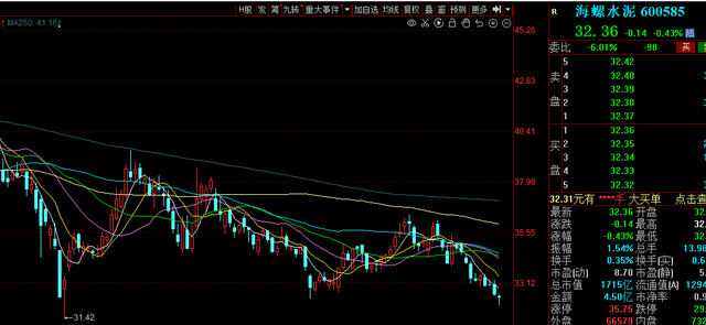 并且,按照前復權價格顯示,海螺水泥的現(xiàn)價為32.36元,已經創(chuàng)下了今年以來的收盤價新低。