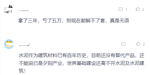 不過,股價自高位下落,就會有看多的觀點出現(xiàn),有投資者表示:“水泥作為建筑材料已有百年歷史,目前還沒有替代產品,還不能說已是夕陽產業(yè),世界基礎建設還離不開水泥及水泥建筑!”