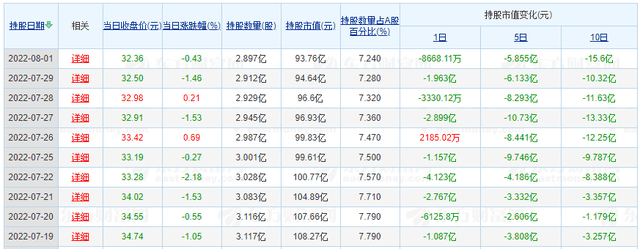 最近10個交易日,北向資金的持股數(shù)量持續(xù)在減少,由3.117億股減少至2.897億股。再結合海螺水泥一季度披露的股東數(shù)據(jù)可以看出,在二季度里,北向資金就在減倉了。