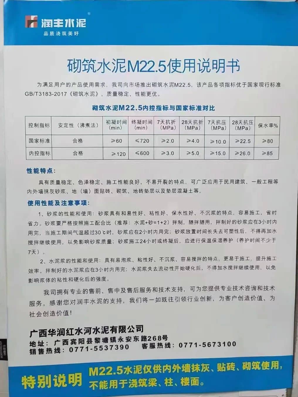 水泥人網通訊員消息,日前廣西華潤紅水河水泥有限公司潤豐品牌砌筑水泥M22.5 隆重上市 。