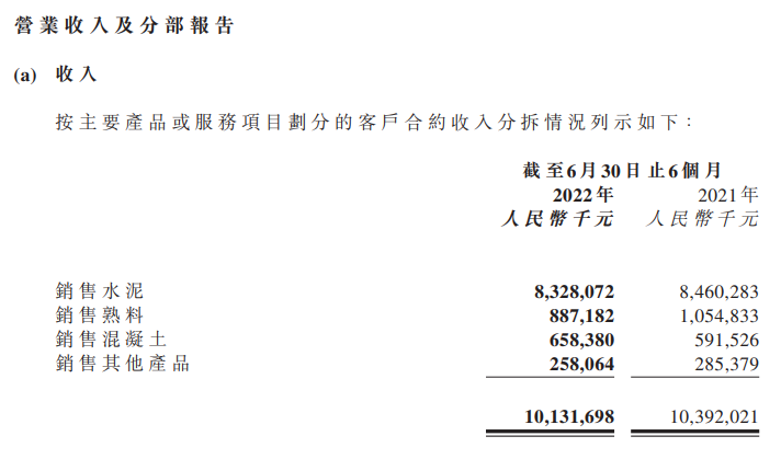 2022年上半年,山水水泥持續(xù)致力于細(xì)化內(nèi)部基礎(chǔ)管理,以提升現(xiàn)有生產(chǎn)運營質(zhì)量和可持續(xù)盈利能力。截至2022年6月30日,水泥產(chǎn)能9,679萬噸,熟料產(chǎn)能5,047萬噸,商品混凝土產(chǎn)能1,710萬立方米。報告期內(nèi),本集團銷售水泥、熟料合計23,848,471噸,同比減少18.2%;銷售商品混凝土1,512,000立方米,同比增加4.0%;營業(yè)收入人民幣10,131,698,000元,同比減少2.5%;本期盈利人民幣468,716,000元,同比減少62.5%。