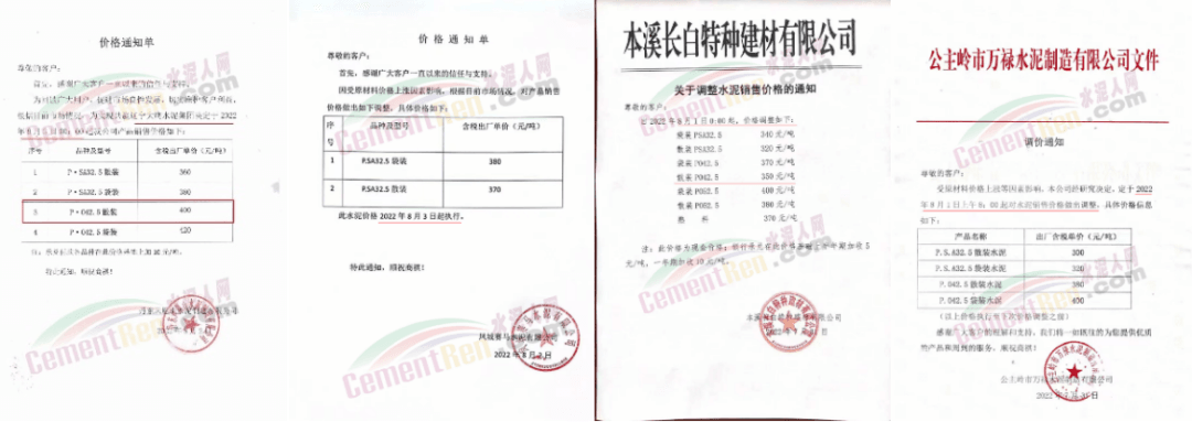 受遼寧區(qū)域水泥價(jià)格大幅上漲影響,吉林區(qū)域多家企業(yè)通知自8月2日起上調(diào)水泥價(jià)格50-55元/噸,價(jià)格上調(diào)后P.O42.5散裝水泥報(bào)價(jià)380-465元/噸。