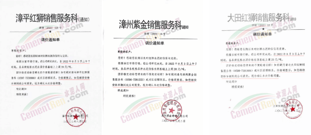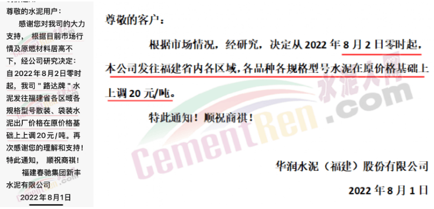 受前期長(zhǎng)三角區(qū)域水泥、熟料同步上漲影響,福建區(qū)域主要品牌企業(yè)華潤(rùn)、紅獅等于8月2日開始上調(diào)水泥價(jià)格20元/噸。