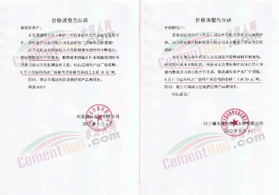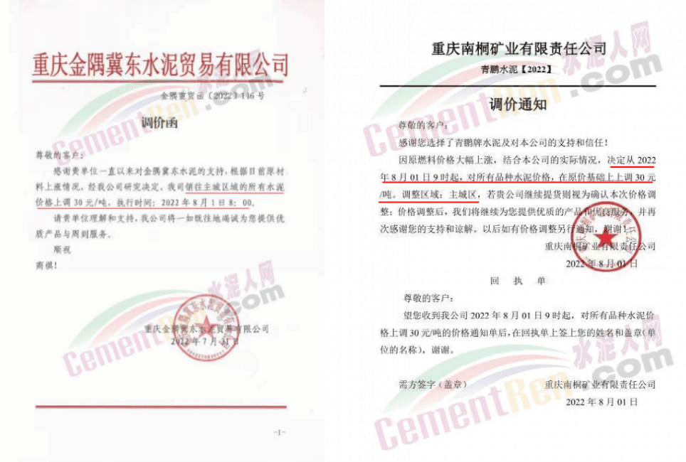 重慶近期有零星疫情散發(fā),個(gè)別小區(qū)實(shí)施管控,導(dǎo)致部分水泥廠員工無法上班,個(gè)別水泥企業(yè)停窯限產(chǎn)。同時(shí)因成本端持續(xù)上漲,區(qū)域內(nèi)主要品牌企業(yè)冀東水泥、南桐礦業(yè)等通知自8月1日起上調(diào)水泥價(jià)格30元/噸。