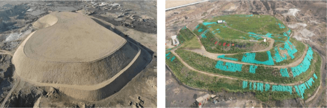 內蒙烏海能源老石旦煤礦Ⅲ號矸石山生態修復應用研究與示范施工前后對比圖