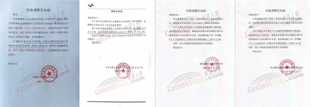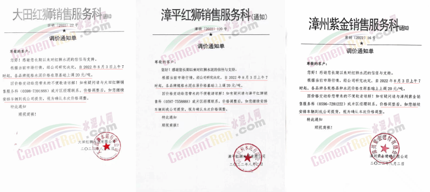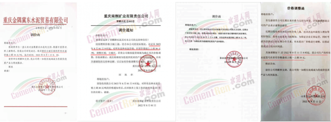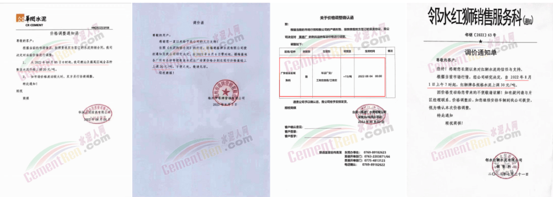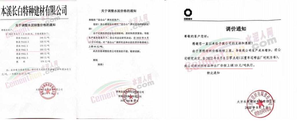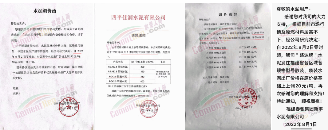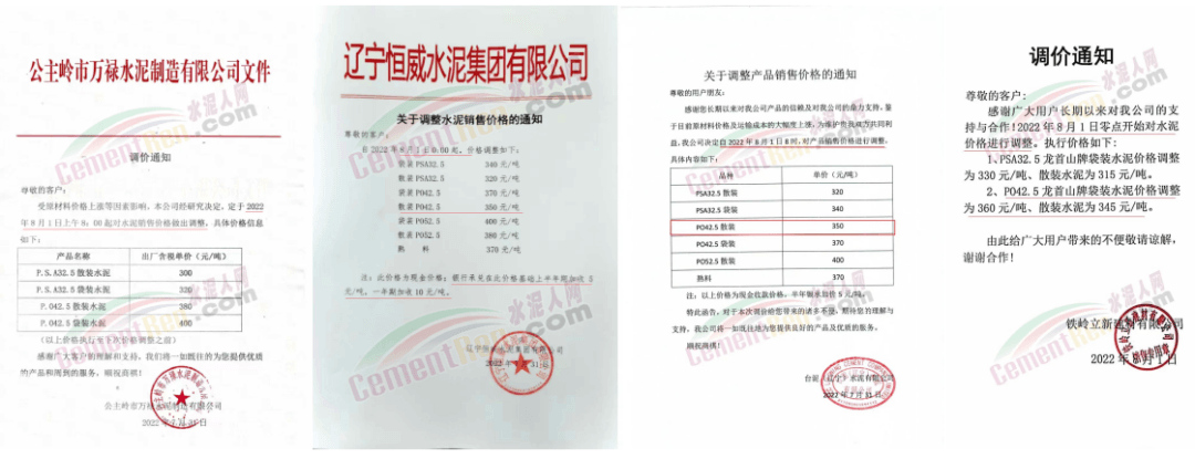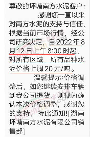 坪塘南方水泥通知,根據當前市場行情,經公司研究決定,自2022年8 月12日上午8∶00時起,對所有區域,所有品種水泥價格上調20元/噸。