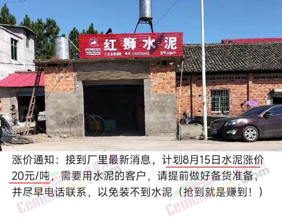 紅獅水泥經銷商通知∶接到廠里最新消息,計劃8月15日水泥漲價20元/噸,需要用水泥的客戶,請提前做好備貨準備,并盡早聯系,以免裝不到水泥(搶到就是賺到)。
