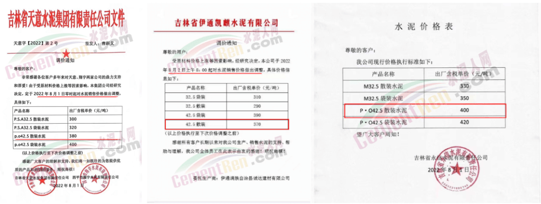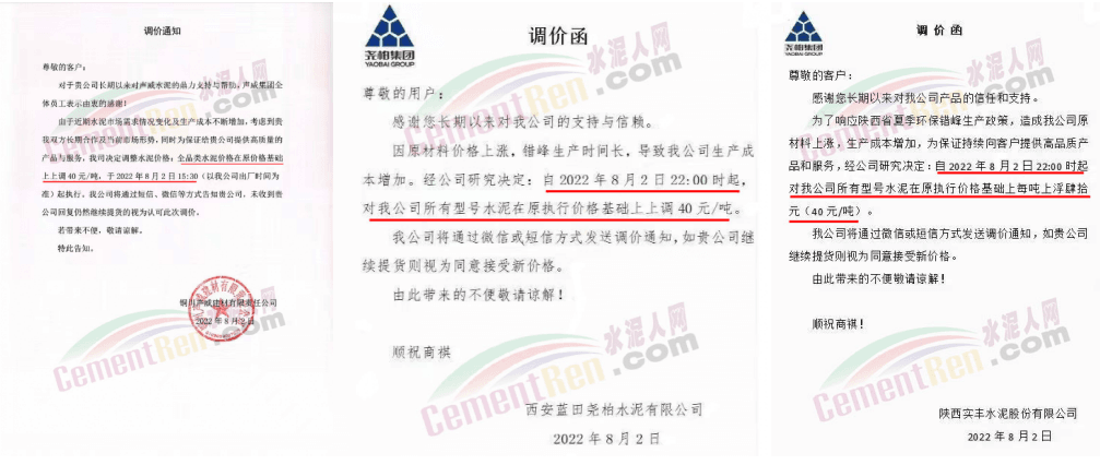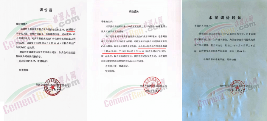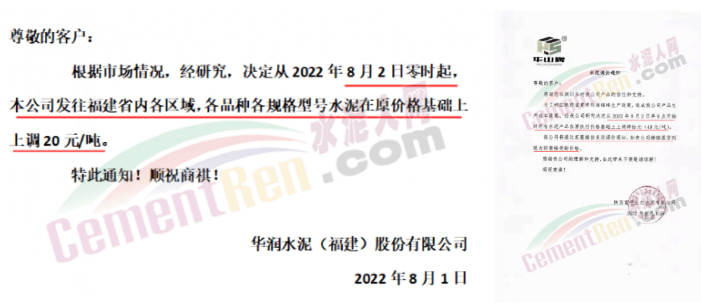 近來多區域通知上調水泥價格。日前,桃江南方水泥通知,根據當前市場行情,經公司研究決定自2022年8月12日08時起,對長沙市(含寧鄉),湘陰縣所有品種包、散裝水泥價格上調20元/噸。價格調整后,如繼續安排車輛到公司提貨,則視為確認本次調整。