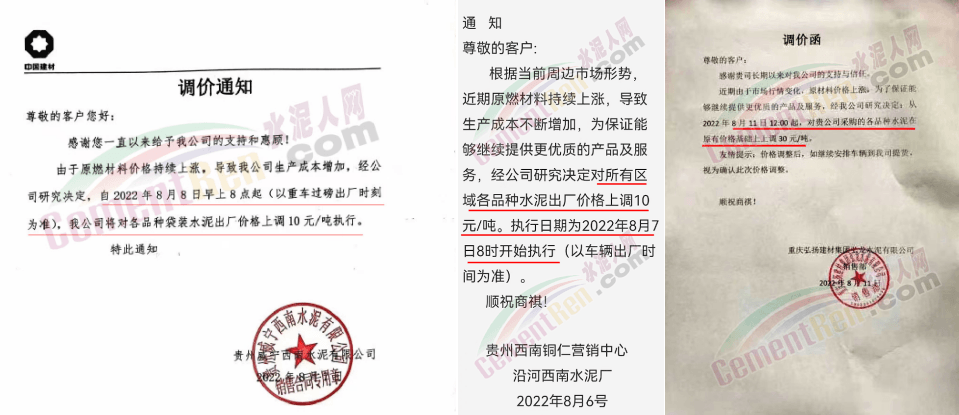 不到半個月時間20多個省市自治區通知上調水泥價格