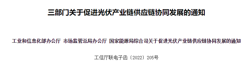 為優化建立全國光伏大產業大市場,促進光伏產業高質量發展,積極推動建設新能源供給消納體系,要求各地工業和信息化、市場監管、能源主管部門要圍繞碳達峰碳中和戰略目標,科學規劃和管理本地區光伏產業發展,積極穩妥有序推進全國光伏市場建設。統籌發展和安全,強化規范和標準引領,根據產業鏈各環節發展特點合理引導上下游。《三部門關于促進光伏產業鏈供應鏈協同發展的通知》全文如下: