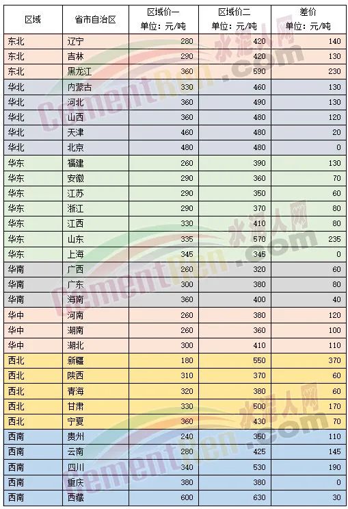 單從發(fā)布漲價(jià)的函的省份來(lái)看,幾乎全區(qū)域都在調(diào)漲。但是并不是所有省份的所有地區(qū)都調(diào)價(jià)了水泥價(jià)格,部分區(qū)域水泥價(jià)格觸底后一直未見(jiàn)反彈,持續(xù)磨底中。