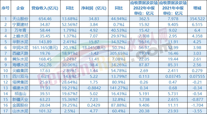 皮之不存,毛將焉附,下游企業(yè)頻頻爆雷、破產(chǎn)。水泥企業(yè)業(yè)績也出現(xiàn)大幅下滑,應(yīng)收賬款增加。