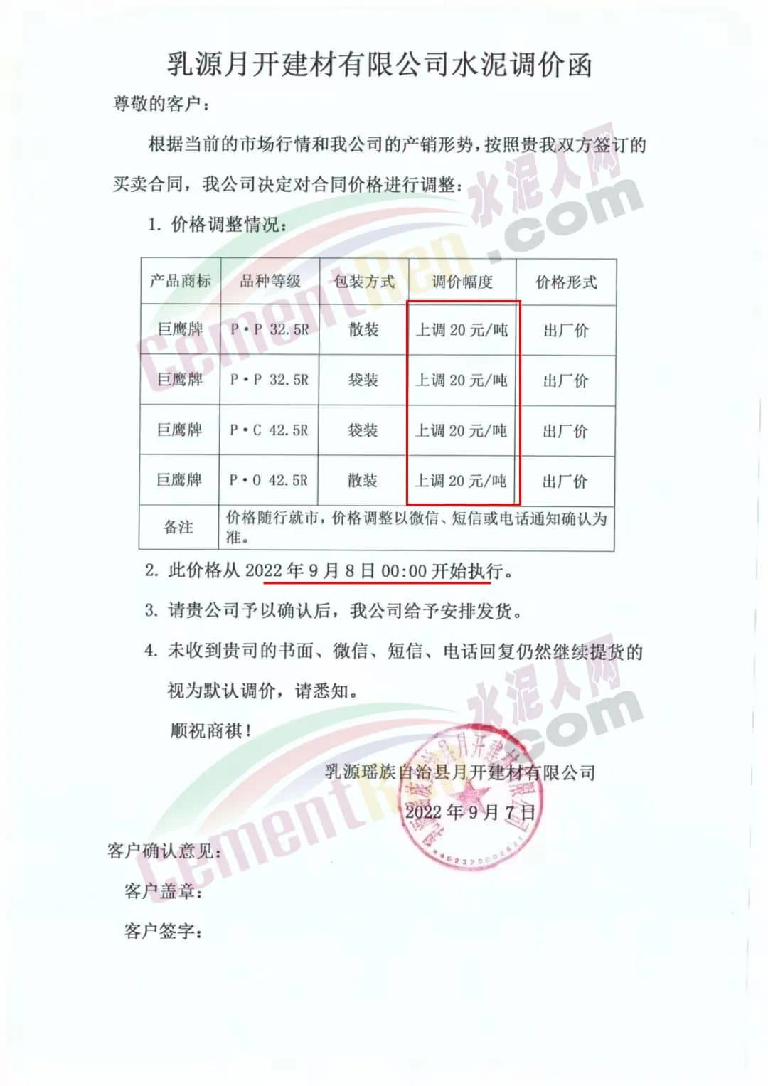 由于煤炭價格的不斷攀升,讓下游的水泥企業成本急劇上升,水泥企業也紛紛亮起漲價大旗,開始了漲價模式。企業漲價通知多稱因原燃材料價格上漲,成本增加。