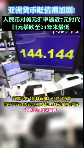視頻:9月7日,1美元兌人民幣6.9160元,較上一交易日下調64個基點。人民幣對美元匯率逼近7元時代。