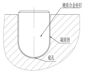 輥體運行時柱釘會受到非軸向力傳導至粘膠及輥體,過盈量的設置、輥套母體的強度高低會在實際運行中檢驗出是否會出現在非軸向力的作用下將輥體孔壁沖擊變形,導致柱釘與孔間隙增大,從而使柱釘脫落。再者各系統物料溫度不同,如物料在出現高溫段時鑲嵌的柱釘與鉆孔間粘膠溶膠而引起柱釘脫落,如不及時補釘維護,很容易造成柱釘脫落處的母體磨損從而出現相關的問題。