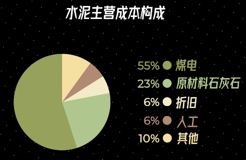 水泥屬于同質化產品,龍頭企業之間比拼的是成本控制能力。水泥的成本主要是煤、電、原材料(石灰石)、折舊和人工。以海螺水泥2021年年報的數據為例,成本構成中煤電占比55%,原材料占比23%,折舊占比6%,人工占比6%。