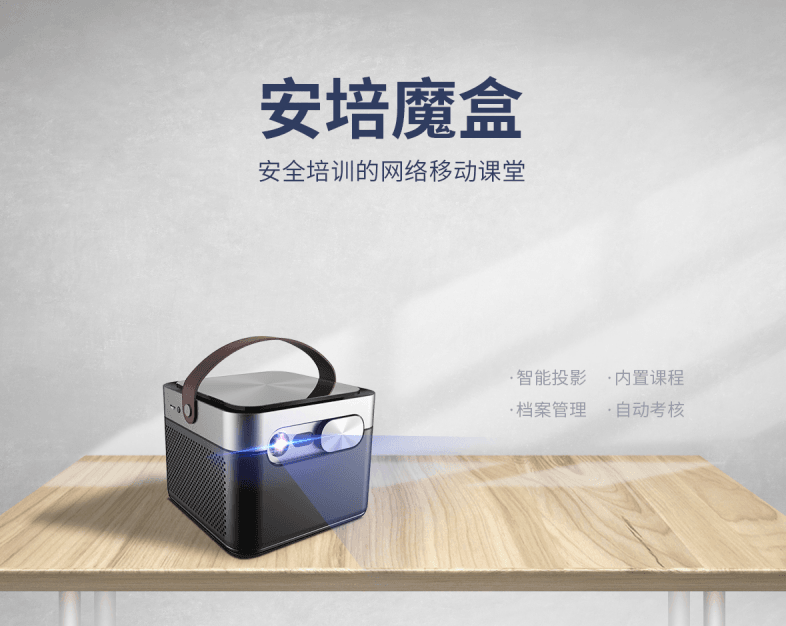 安培魔盒是一款解決水泥企業安全教育培訓難題的移動智能終端,其自帶投影,體積小巧輕便,內置成體系的安全培訓課程和安全培訓管理系統,安管人員通過它可隨時隨地開展一次規范的安全教育培訓,涵蓋掃碼考勤、多媒體培訓、手機考試、自動歸檔全過程,全面解決企業培訓組織難、考核閱卷難和檔案整理難等問題,讓企業輕輕松松開展安全培訓工作,減輕安管人員培訓工作量。