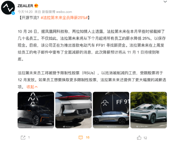 即使是一片火熱的新能源汽車也未能獨(dú)善其身,賈躍亭旗下的新能源汽車公司法拉第未來由于受到美股、匯率等因素波動(dòng),導(dǎo)致其現(xiàn)金流出現(xiàn)了問題。該公司已經(jīng)通過郵件向全員通知全員降薪25%,以維持公司日常所需現(xiàn)金流。