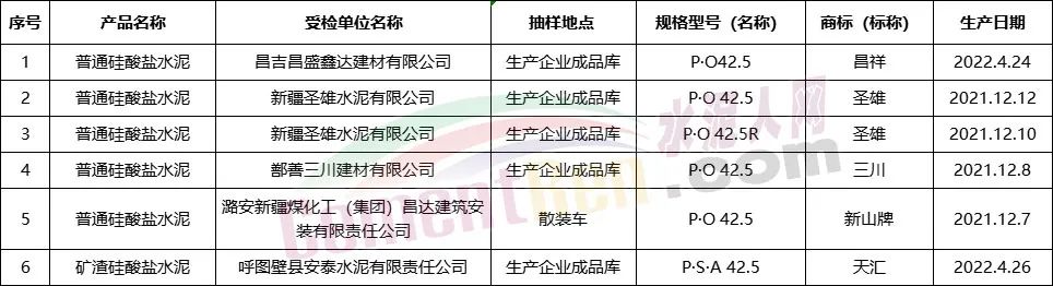 據(jù)通告,本次抽查的通用硅酸鹽水泥產(chǎn)品,在生產(chǎn)領(lǐng)域抽查了74家企業(yè)的90批次產(chǎn)品,檢出6批次產(chǎn)品不合格,不合格項目為氯離子。