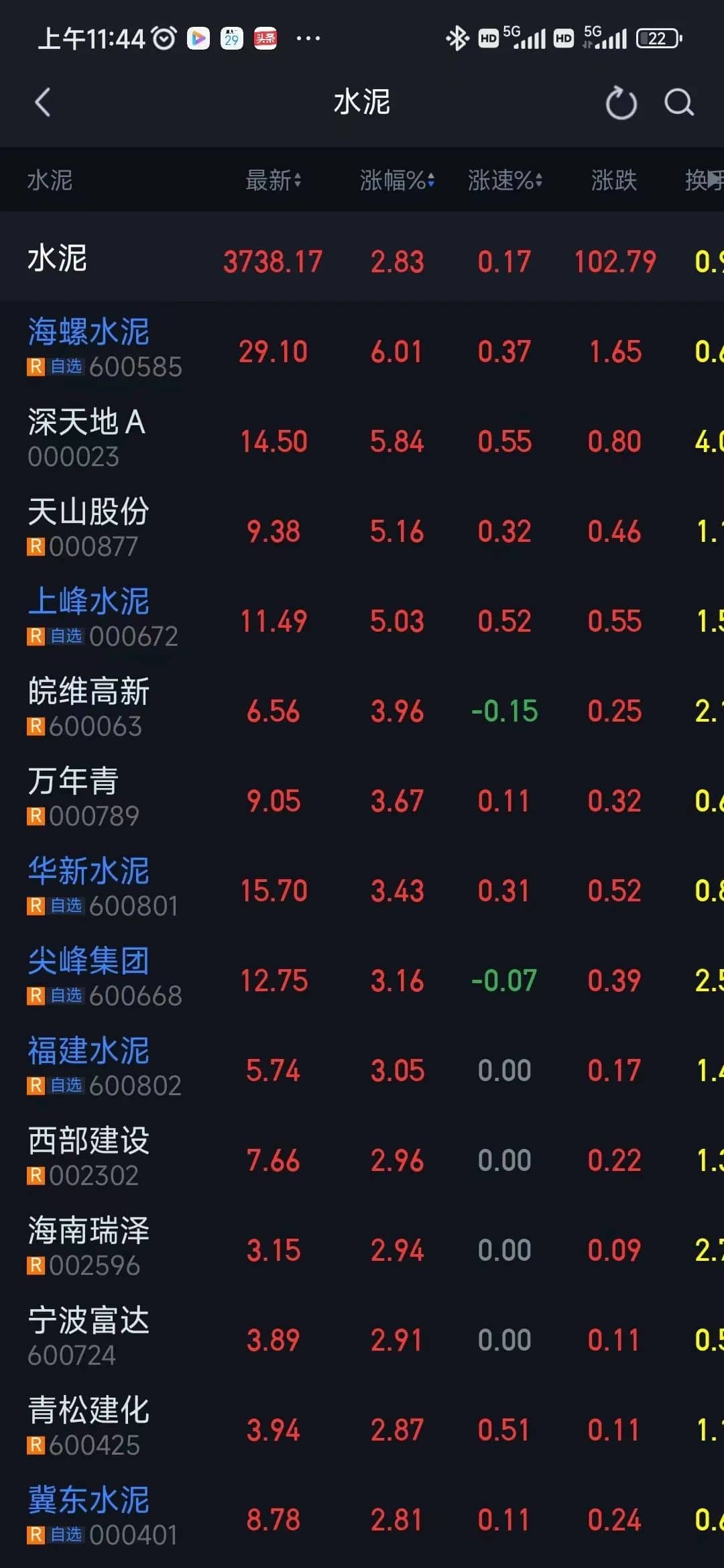 同時(shí),水泥股早盤集體上漲,中國建材(03323)漲3.62%,報(bào)6.59港元;海螺水泥(00914)漲3.02%,報(bào)27.25港元;華新水泥(06655)漲2.84%,報(bào)7.96港元;華潤水泥控股(01313)漲2.56%,報(bào)4.01港元。A股水泥板塊也集體飄紅。