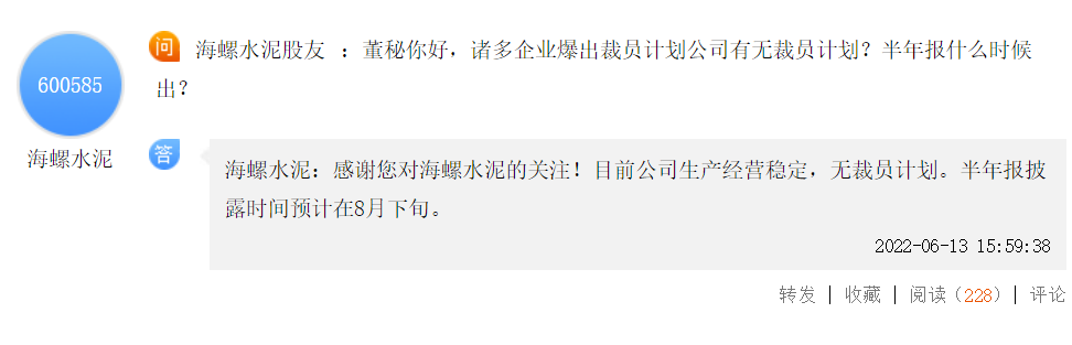 但據水泥人網了解,近幾個月以來海螺水泥安全獎已減半,且有消息稱虧損企業年金也將取消。這些“開支”的減少,也等同于少支付了“部分人的薪水”。此前還因云貴區域錯峰生產強制放假,員工只領不足千元的“低保工資”。